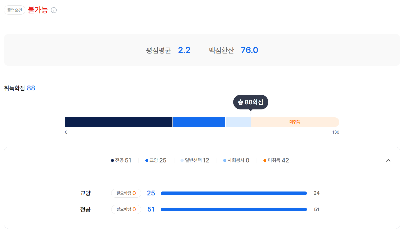 2025년 2학기까지 진행한 후 나의 취득학점은 88점!
